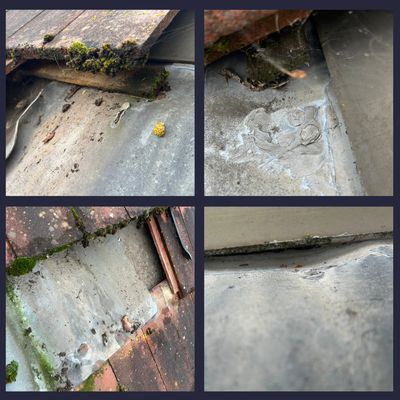 Due to the extent of the required works — including removal and replacement of lead flashing, re-dressing, new soakers where necessary, and re-tiling — the full repair could not be completed during the initial visit.
